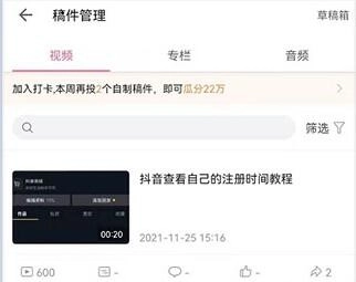 3、在这个功能里,点击顶部的【稿件管理】就能进入自己发布的作品页面。