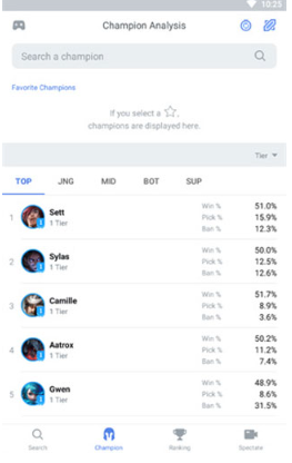 OPGG最新版可以让所有的用户们在这里查看每个参赛者的排名和数据,还可以观看视频和直播地址,可以获得英雄胜率的排名。