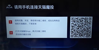手机连接WIFI网络,打开蓝牙,使用浏览器扫电视上屏幕上的二维码天猫魔投或阿里TV助手。