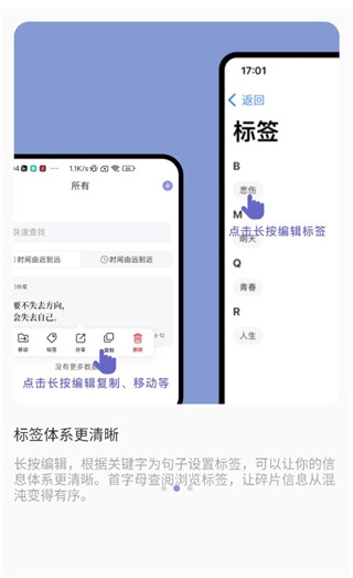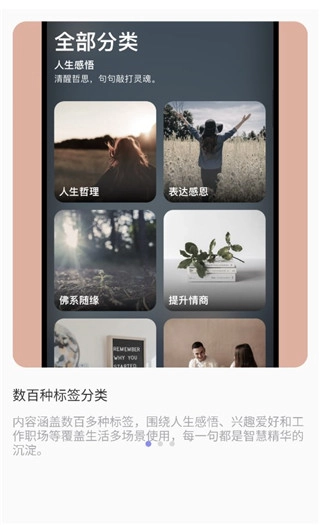 2、个性化标签:我们会给每句名言都配上专属的个性化标签,这样您就能按照主题或者情感来分类查找,让您收藏的内容变得更有条理。