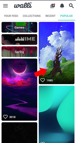 1、打开walli壁纸应用,选择自己偏好的壁纸类别,然后找到心仪的壁纸并点击它。
