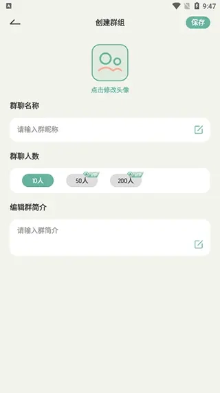 3、在创建群组界面,设置好相关信息,点击保存即可