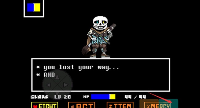 2、ink Sans会施展技能,使出不同的招数,玩家需要操控爱心来躲避攻击。