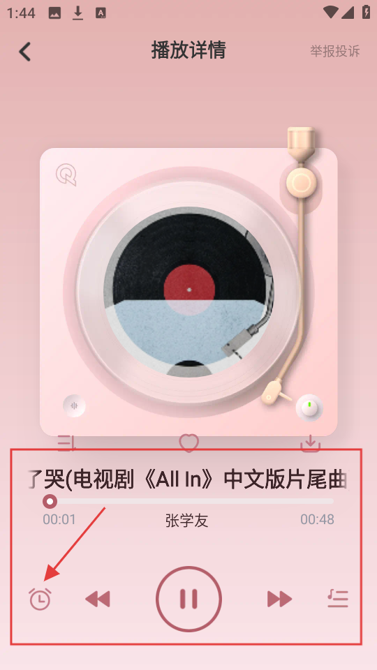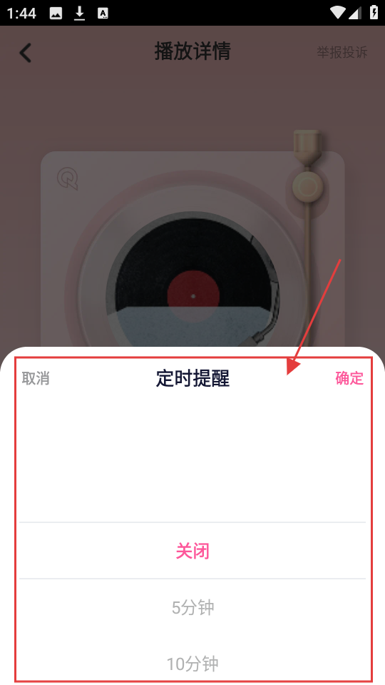 在播放详情页找到定时图标,点击进入定时提醒设置页面后,即可对播放时长进行设置。