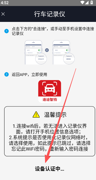 3、请确保行车记录仪设备与当前应用处于相同的网络环境中,以便顺利完成连接操作。