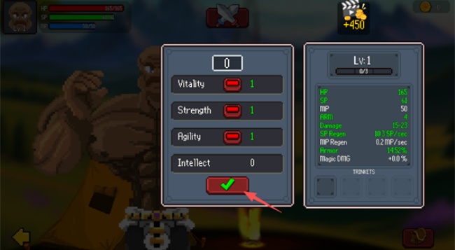 1、游戏开始,会让玩家选择基础属性,建议均衡加点,初期并不需要专精于某个方面。
