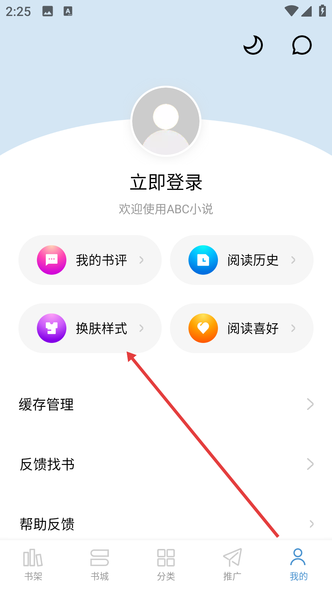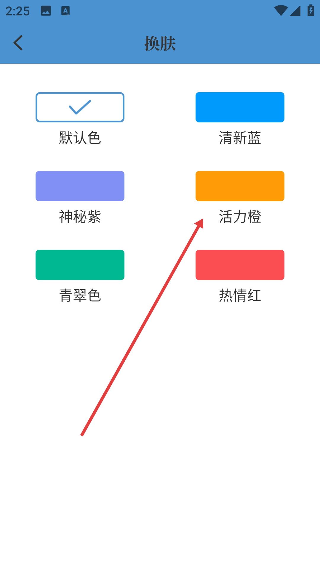 在个人页面点击【换肤样式】,进入换肤选择界面。