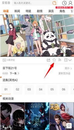 在观看的界面中点击如图所示的星星符号即可收藏