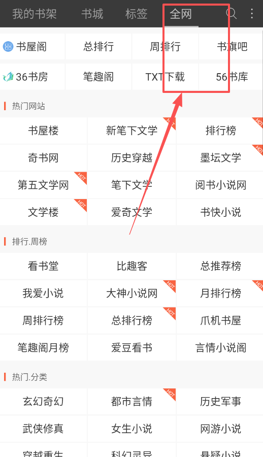 3、全网页相当于资源中心,收录了多个小说网站与排行榜,如需更多书源或参考口碑可在此页操作。