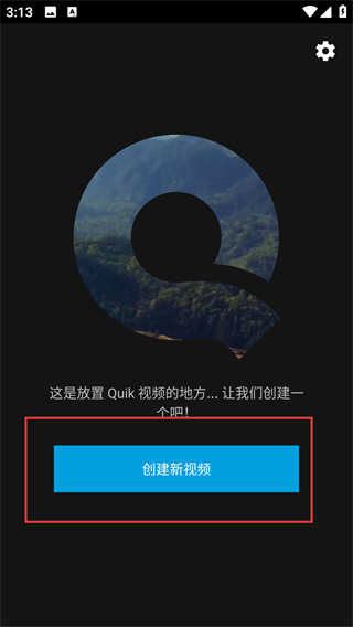 1、在【Quik】主界面点击【创建新视频】按钮,即可进入视频制作流程,开启新视频的创作。