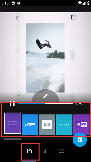 进入视频编辑页面后,可以选择【Grammy】【ACTION】等风格模板,为视频添加对应的效果。