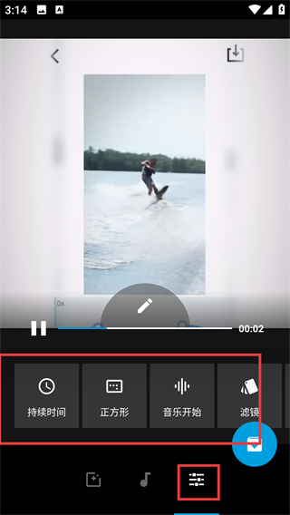 4、点击底部的功能按钮,即可调出【持续时间】【滤镜】等选项,大家可以根据自身需求调整视频的各项参数。