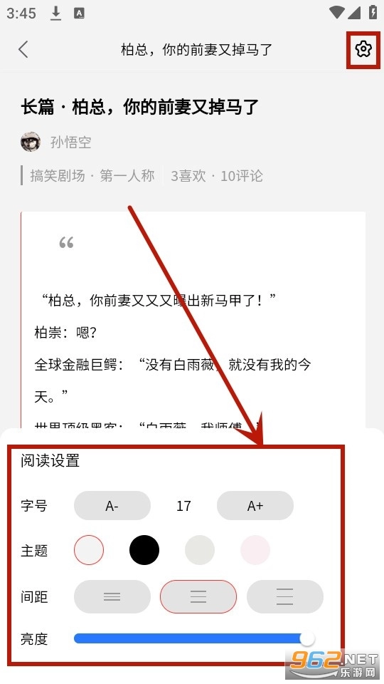点击右上角的设置按钮,能够调整字号、主题等内容。