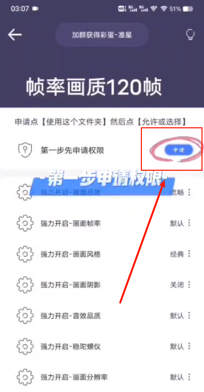 点击界面里的“申请权限”按钮来获取所需的系统授权。