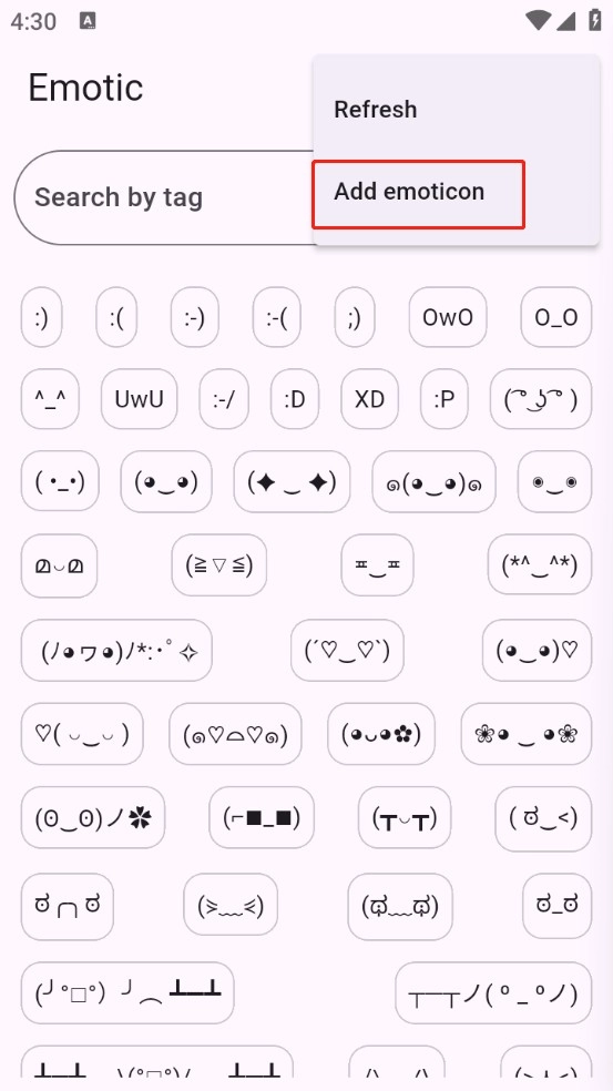点击页面右上角的三个点图标,然后选择“add emoticon”选项。