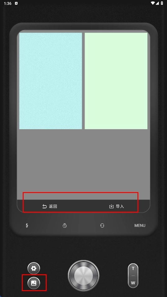 点击底部的旋钮按钮就能完成拍照,通过调节t-w可以改变画面的显示效果。