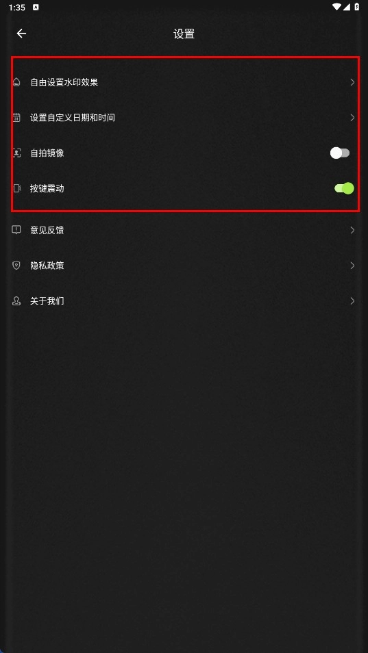 在设置页面中,您可以对自由设置水印效果、自定义日期时间等功能进行调整。