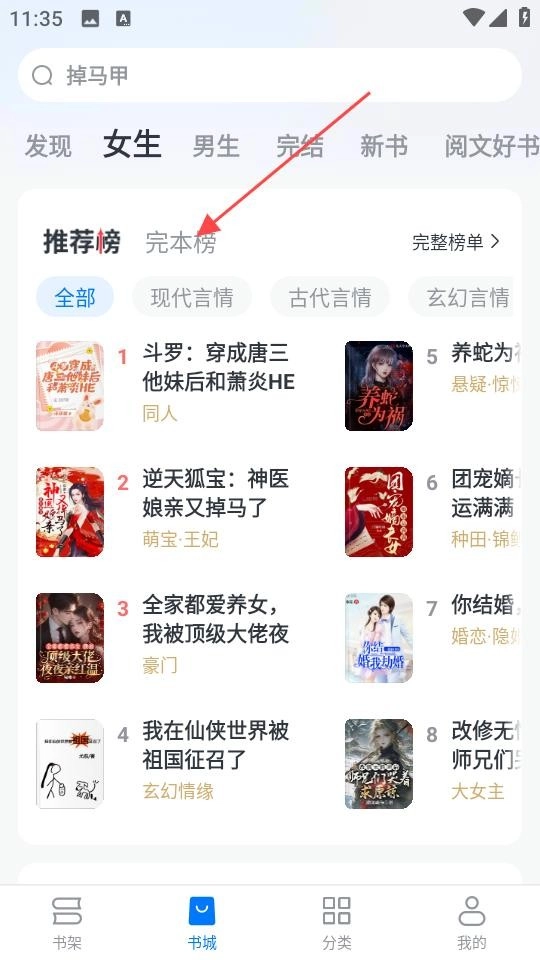 在书城界面里,呈现着女生频道的推荐榜单,用户能够浏览各类小说,便于找到契合自身的阅读内容。