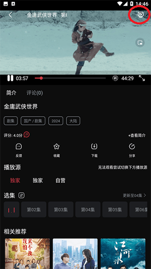 点击你想看的影片后,软件会自动开始加载并播放,在播放界面里,点击右上角的TV图标就可以了。