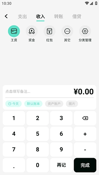 3、多种记账类型可选,助力养成良好记账习惯;