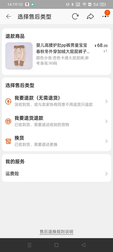接下来会进入售后退款页面,选择你想要的退款方式。