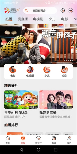 1、开启华数电视后,点击底部导航栏里的【电视】选项,即可进入电视页面。