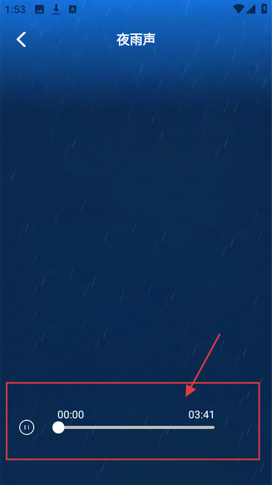 3、进入【夜雨声】播放页面后,会显示进度条,支持播放控制功能,能让人沉浸在雨夜助眠的舒适氛围里,体验感非常好。