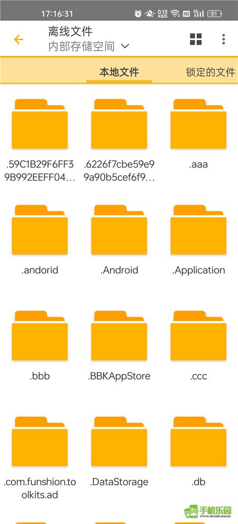 离线文件:显示 Android 设备中的文件夹及文件。浏览本地文件的另一种方法是点按登录屏幕中的离线模式。