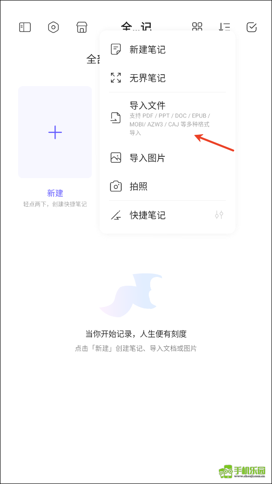 可以通过文件来进行内容导入,通过图片和格式文档来创建笔记内容;