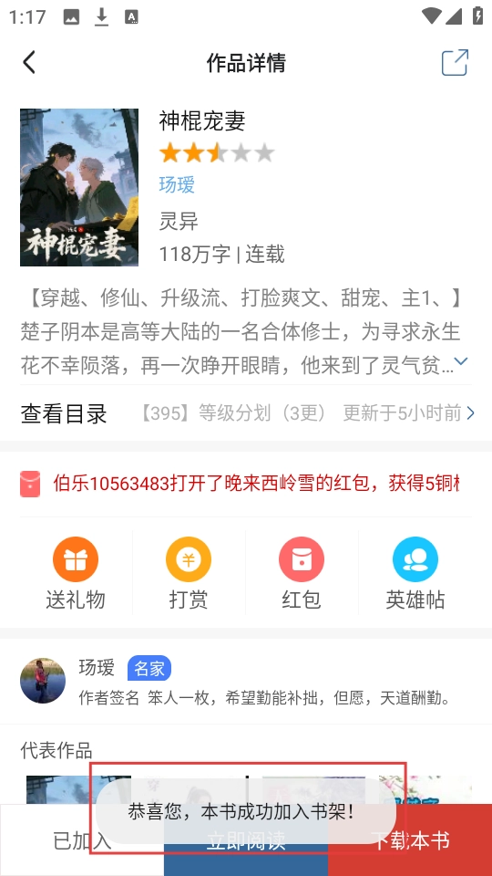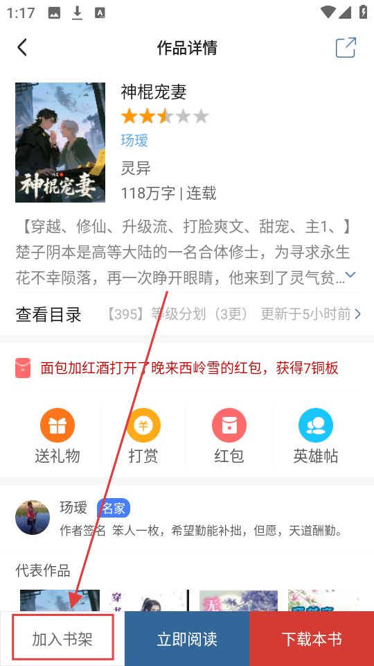 2、在作品详情页点击【加入书架】按钮,即可将该小说添加至书架,便于后续随时阅读。