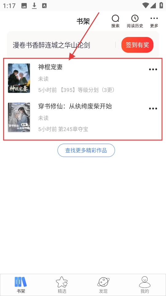4、去书架瞧瞧,能找到刚添加的【神棍宠妻】,随时都能接着阅读哦。
