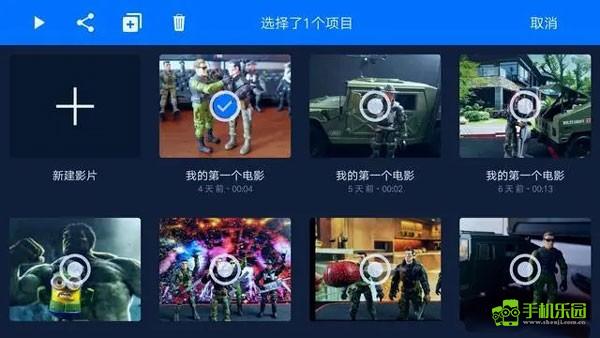 8、然后返回主页面,点击右上角的选择,勾选上你要导出的短片