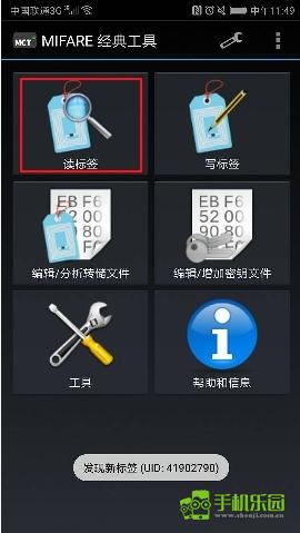 1、先开启手机的NFC功能,再打开对应软件,接着把卡片贴到NFC识别区域,此时会显示“发现新标签”的提示,之后选择“读标签”选项即可。