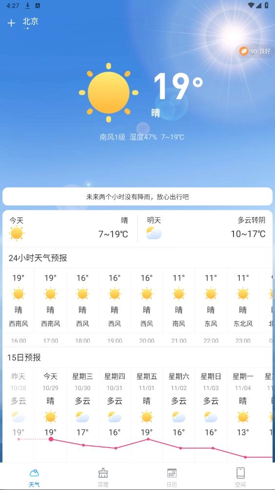 生活指数与贴心提醒:云幻天气不仅提供基础天气预报,还包含穿衣、紫外线、感冒等多元生活指数,助力用户结合天气情况规划日常。此外,应用会依据天气动态智能推送带伞、防晒等实用提醒,为您的生活增添便利。