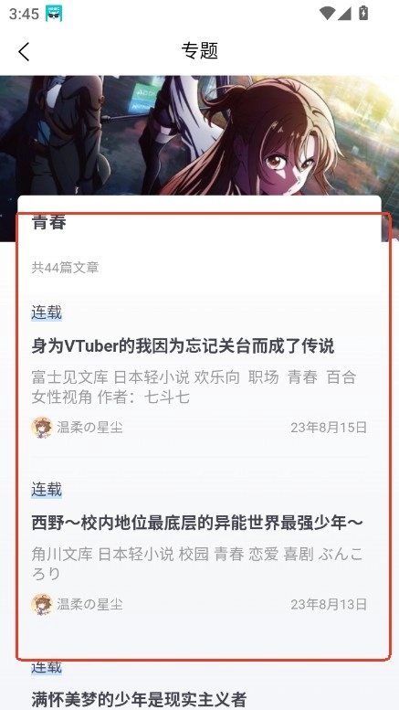 可以根据不同的观看偏好进行选择,小说、漫画、轻小说、青春文学等各类内容都十分丰富。