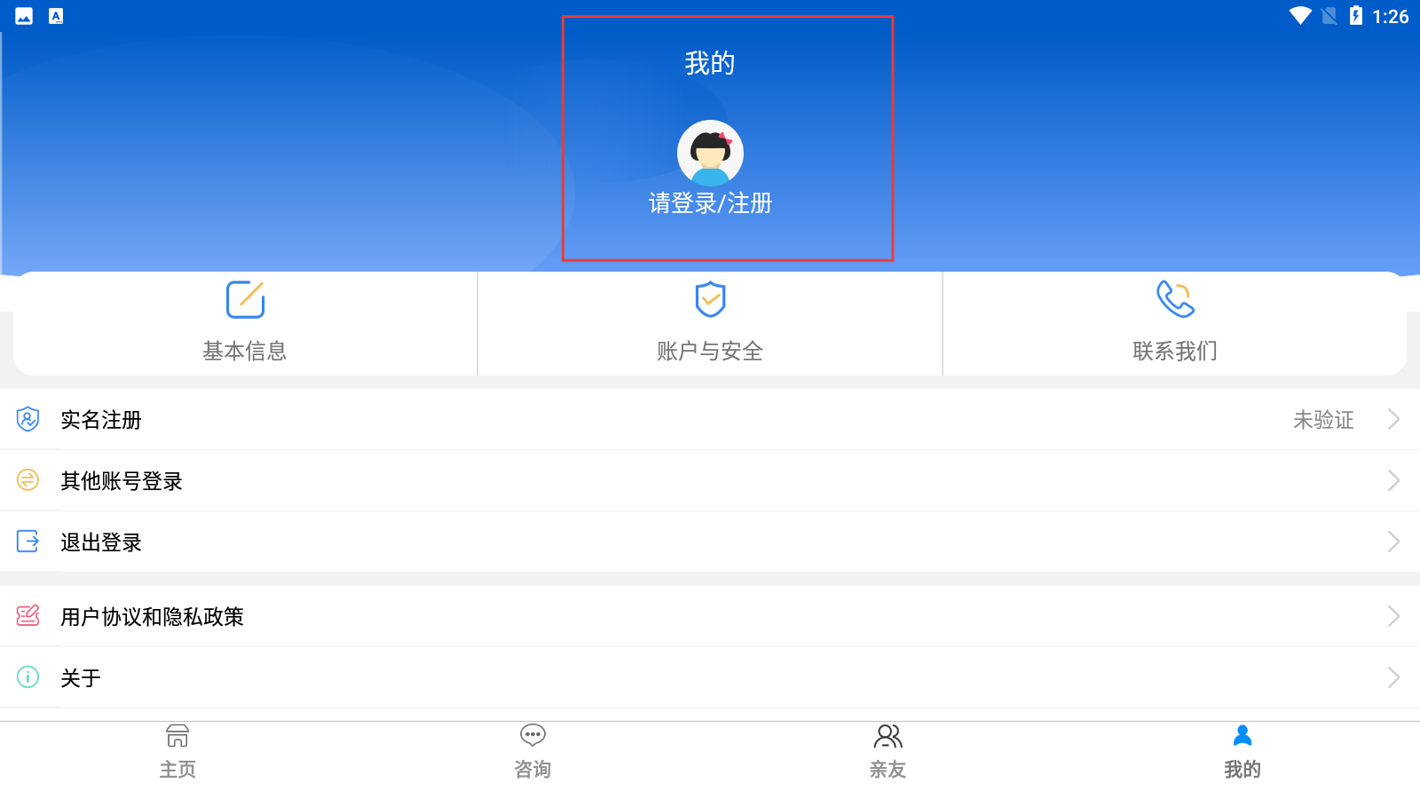 进入个人中心页面后,点击【请登录/注册-功能区域】,即可跳转至登录界面。