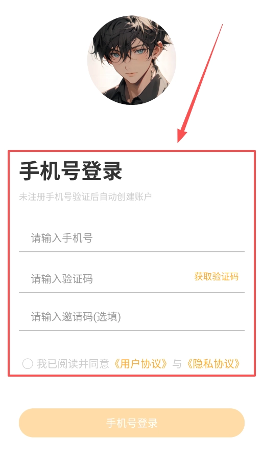 1、首先打开应用,在登录界面输入手机号并获取验证码,要是手机号还没注册过,系统会自动创建新账户哦。