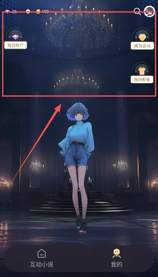 2、点击“我的”进入个人中心,在这里你可以管理自己的账户信息,查看成为会员的相关选项,同时还能找到“我的形象设置”以及互动小说的收藏内容。