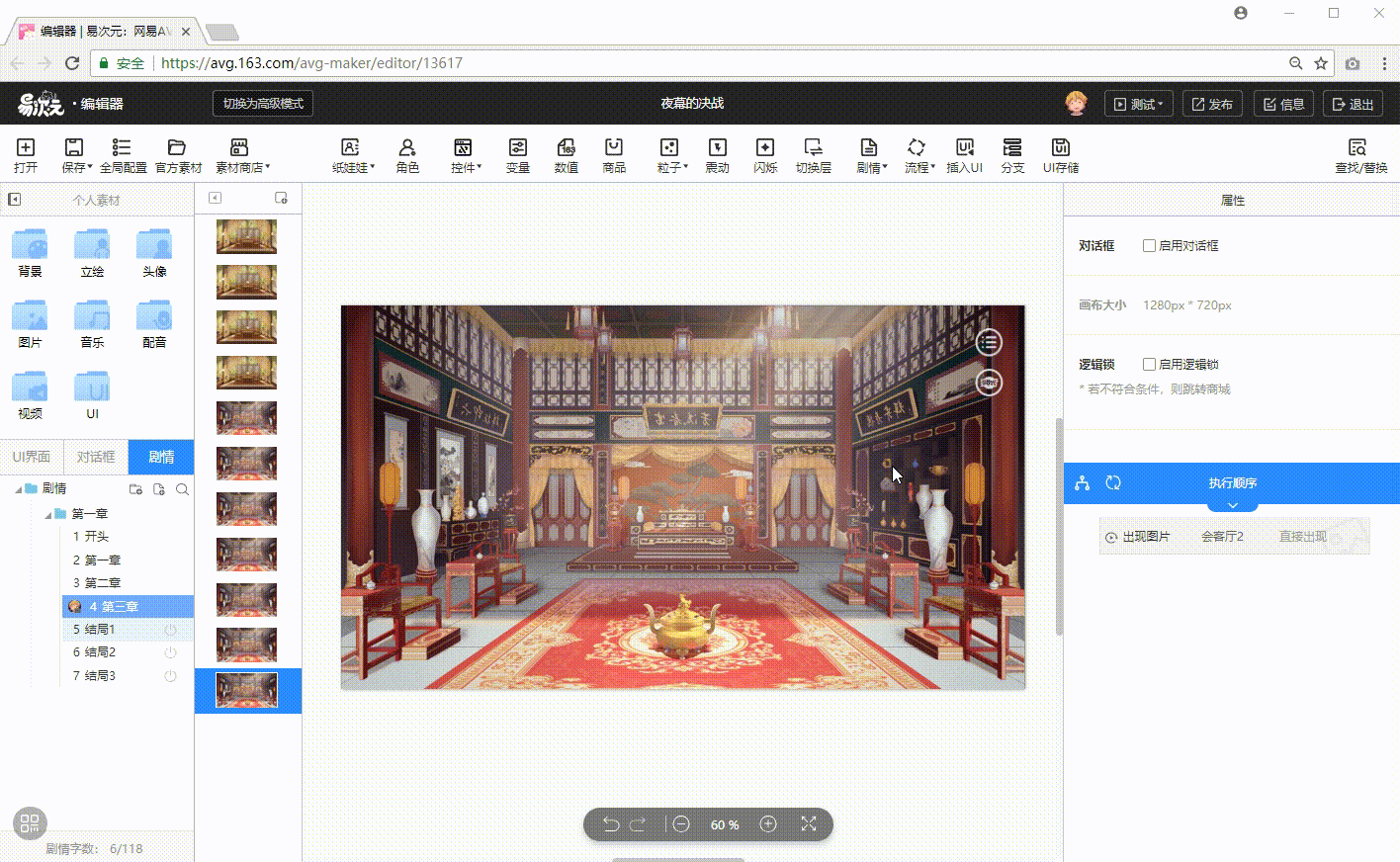 (1)当一个剧情制作完成后,可点击“添加剧情”按钮来新增剧情段。