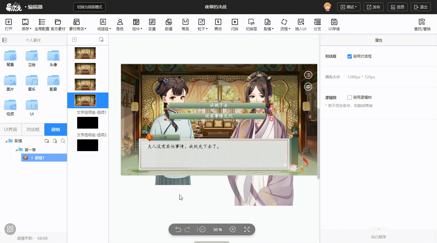 4、继续在剧情中添加画布