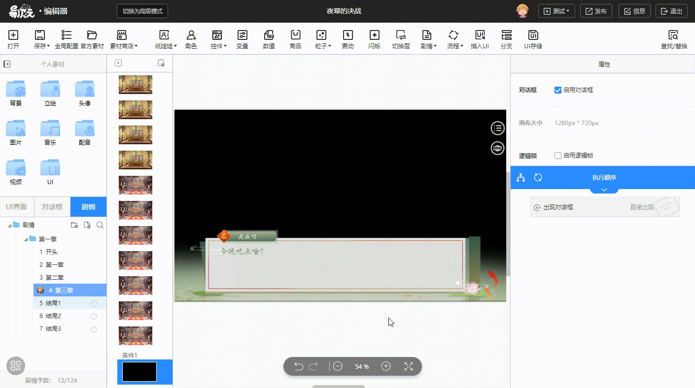(3)回到剧情中,修改当前画面上的对话框。