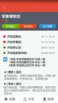你可以直接输入起点和终点,或者通过选择站点来设置行程的起终点,系统会快速为你查询出最省时以及最少换乘的最优路线,方便你根据自身实际情况做出合适的选择。当你选择其中任意一个站台时,还能直接查看该站台的出口位置、周边建筑分布以及厕所等相关信息。信息全面且更新及时,是它的又一个突出优势。