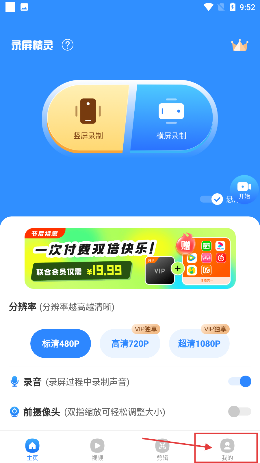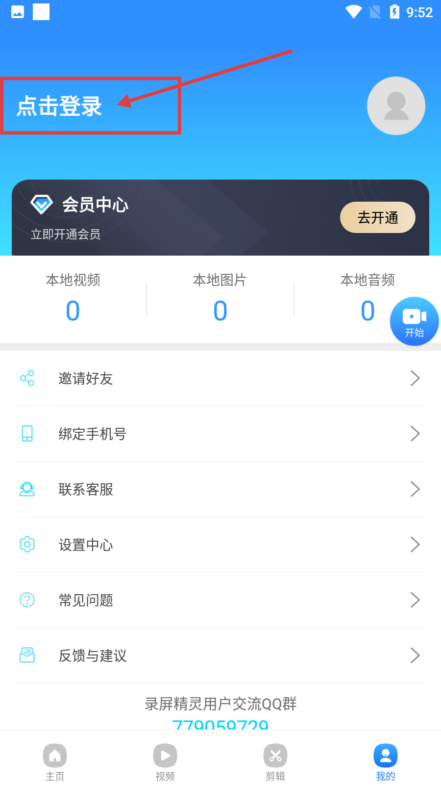 在【录屏精灵】的主页里,点击右下角的【我的】按钮,就能进入个人中心界面。