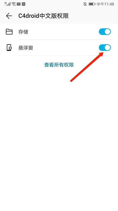 1、首先要进入手机的安全与隐私权限设置界面,找到c4droid这个应用,然后为它开启悬浮窗权限。