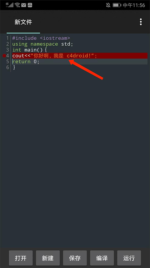 2、接着打开c4droid,开展代码测试工作,把代码输入或者复制到输入框内。