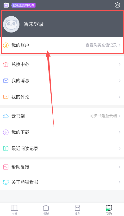 1、首先,打开软件后,底部导航栏清晰划分出书架、书城、福利和我的四大板块。