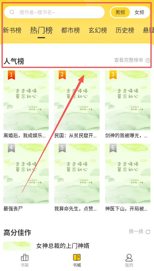 找书时进入“书城”页面,顶部设有“新书榜”“热门榜”等分类标签,直接点击书籍封面即可开始阅读。