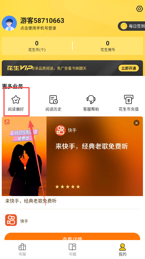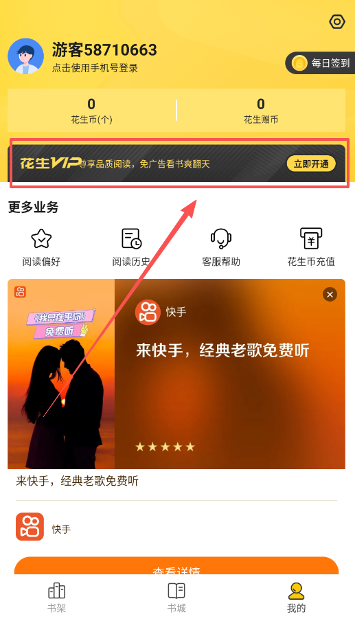 3、若希望拥有更优质的阅读体验,可前往“我的”页面开通花生VIP,从而享受的特权;要是需要购买章节,则可以使用花生币。