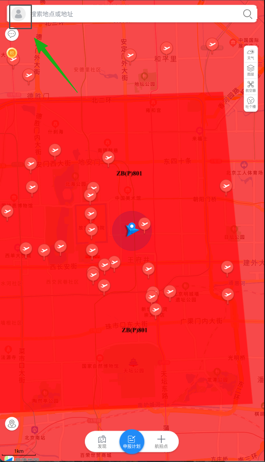 1、空域状态实时查询服务,接入民航局官方数据源,通过可视化地图直观呈现禁飞区、限飞区等核心空域信息,并提供区域搜索与详情查看功能。