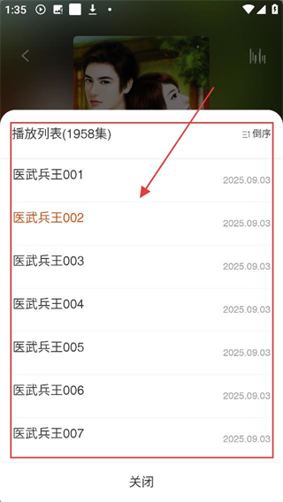4、展开播放列表后,选择目标集数即可切换播放内容,能轻松挑选想听的章节,收听起来更灵活便捷。